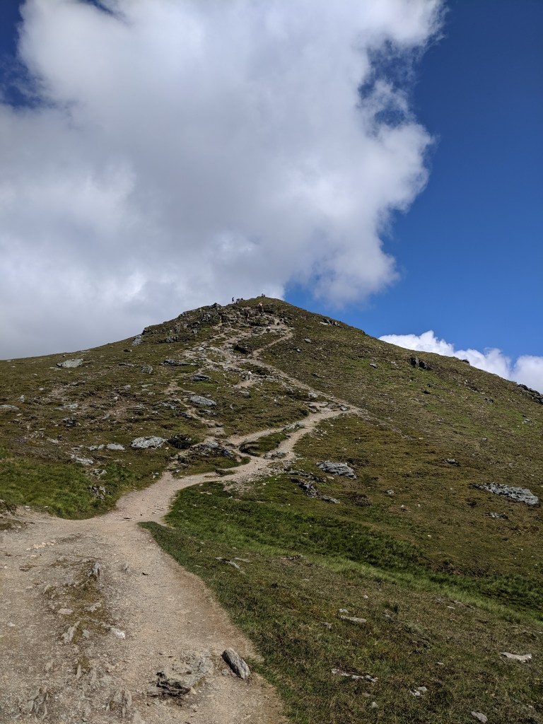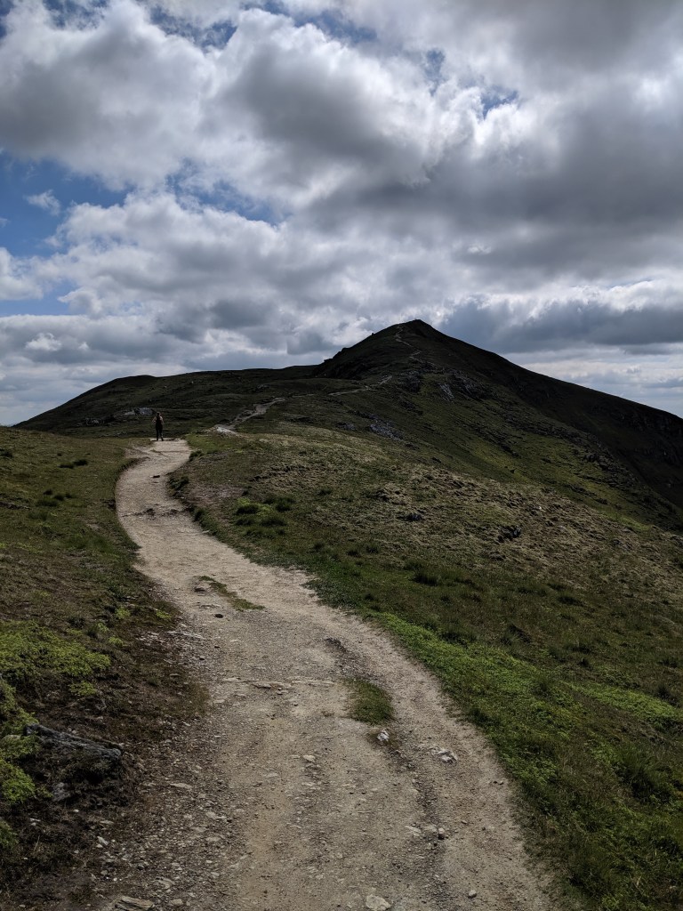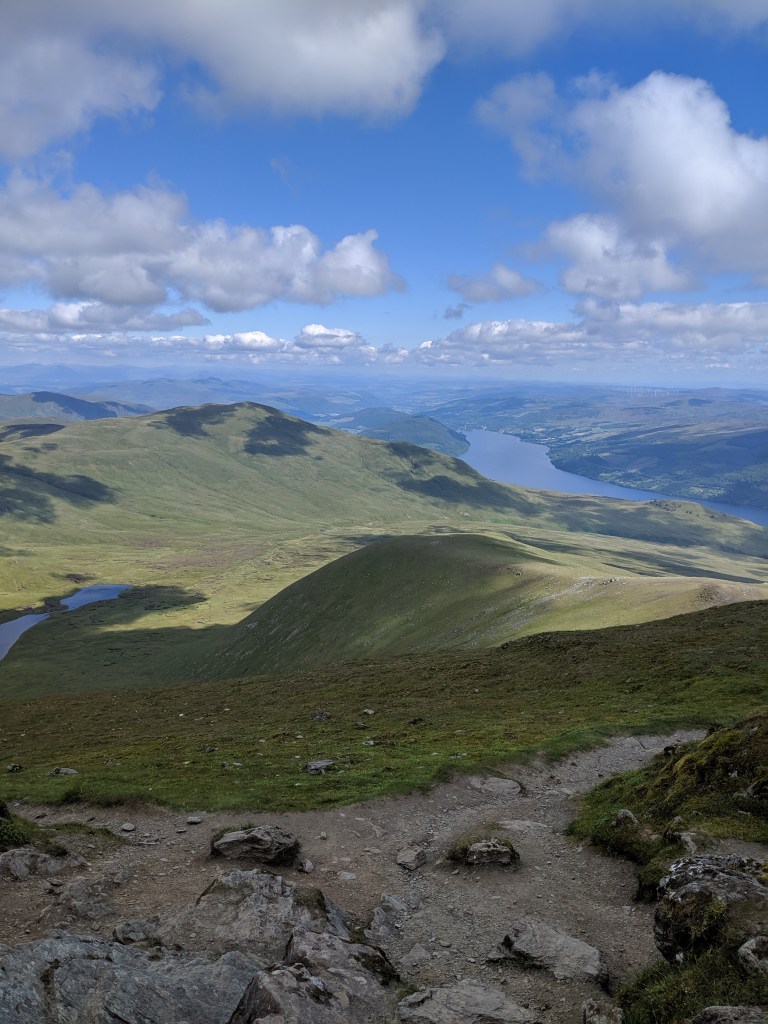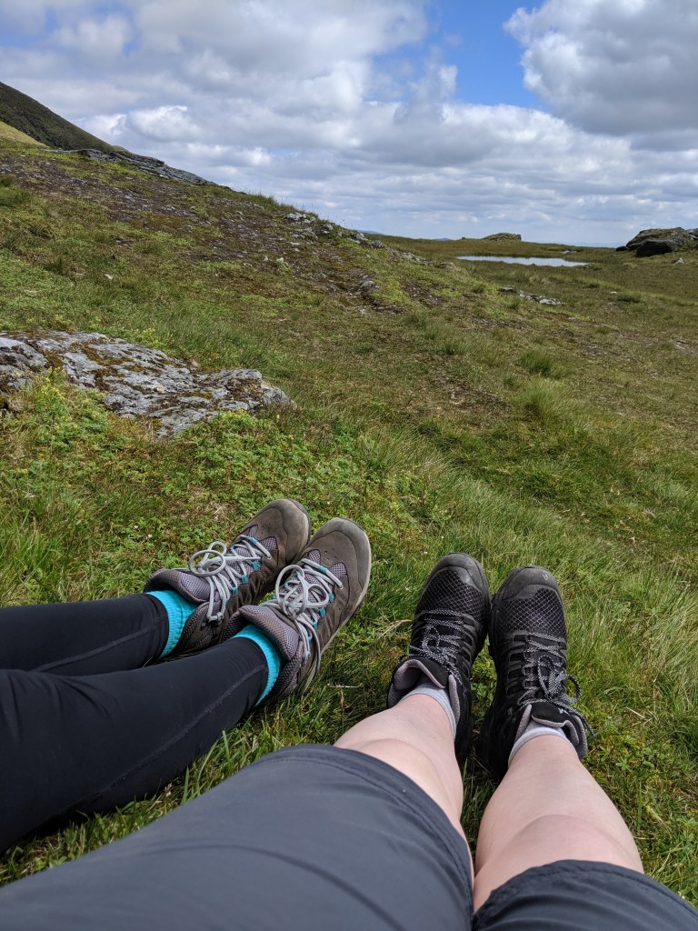 Ben Lawers and Beinn Ghlas were spontaneous and unplanned on the 15th of July 2019. It was a big gap because I had lost my way in my fitness progress after I had started back at work last August and gotten stressed again. I could have restarted at any point but I began to get scared and anxious that I wasn’t good enough or fit enough to climb a hill, so I didnt. But I had bought some new lightweight boots- actually more like high ankled trail runners- for the West Highland Way because my normal boots are very heavy and warm in summer. I adore them and they are completely trust inducing but warm. So new boots were ordered, received and needed testing. The new ones were a bit snug so I also picked up some ultralight bridgedales because they are my sock brand of choice and these weren’t as bulky as my usual medium weights. Expensive but gave a little bit of give in the upper of my new boots. I elected to go this route rather than go up a size in the boots because the length was bang on, just the width that was a tad snug.